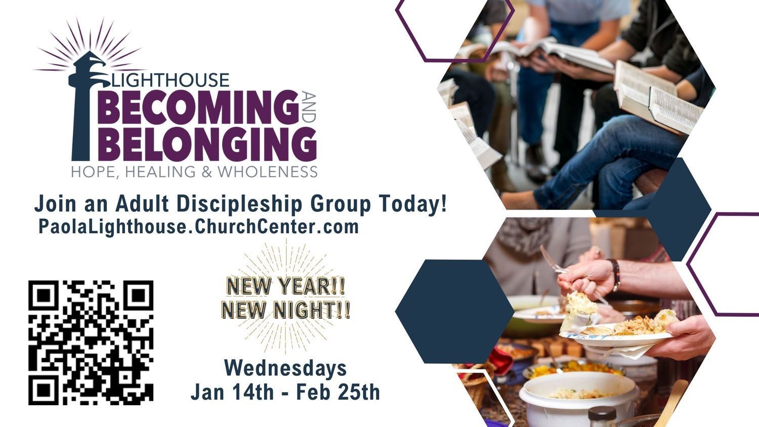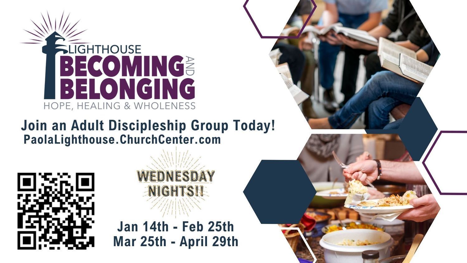 Join us WEDNESDAY nights for a life-giving journey of spiritual formation as we pursue hope, healing, and wholeness together through the power of the Holy Spirit!