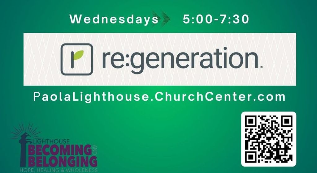 Re:generation Leaders: Tammy Dowd (Women) - tammy@paolalighthouse.com Ron Dowd (Men) -rldowd2@yahoo.com Materials Needed: Books will be purchased through Lighthouse Church. Each book is $14. Re:generation is a biblically based discipleship program offering healing, recovery, and freedom from all types of struggles. The reality is that we all experience brokenness in this life. You are not alone. We all have struggles to overcome. Whether big or small, these destructive thoughts and habits hold us back from the life we want–and the life God calls us to live. |