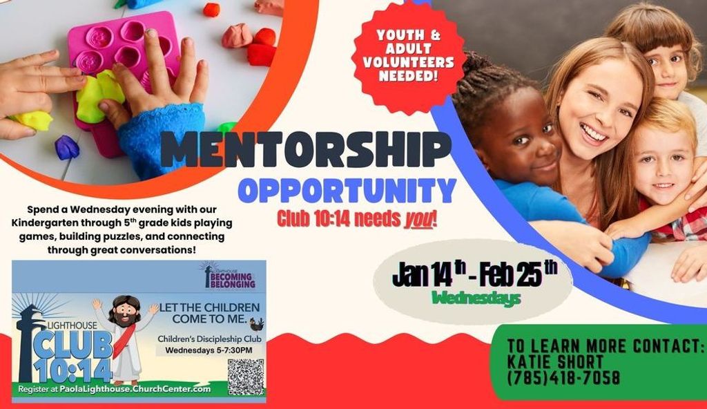 Club 10:14 Leaders: Katie Short - katie@paolalighthouse.com Josh Simons - josh@paolalighthouse.com Materials Needed: All materials will be provided by Lighthouse Church.
