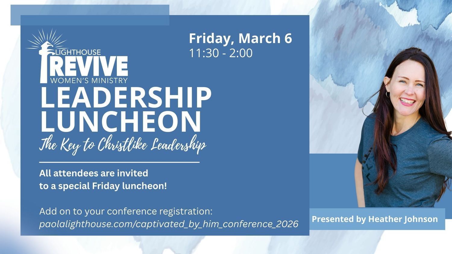 If you have already registered for the Captivated By Him Conference but forgot to add-on the Leadership Luncheon, please email casie@paolalighthouse.com or erin@paolalighthouse.com.